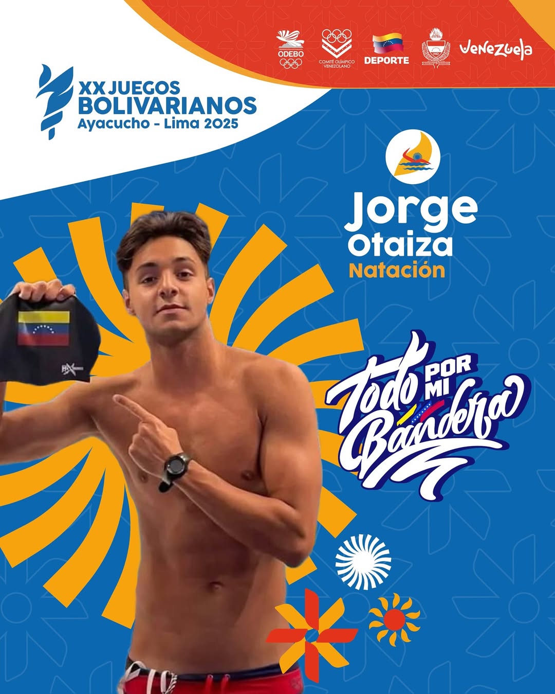 El nadador venezolano Jorge Eliézer Otaiza Hernández es uno de los aspirantes a portar el estandarte nacional en los próximos Juegos Bolivarianos Lima-Ayacucho 2025, honor reservado para aquellos atletas que además de su talento, demuestran liderazgo, disciplina y un historial de logros internacionales que enorgullecen al país.