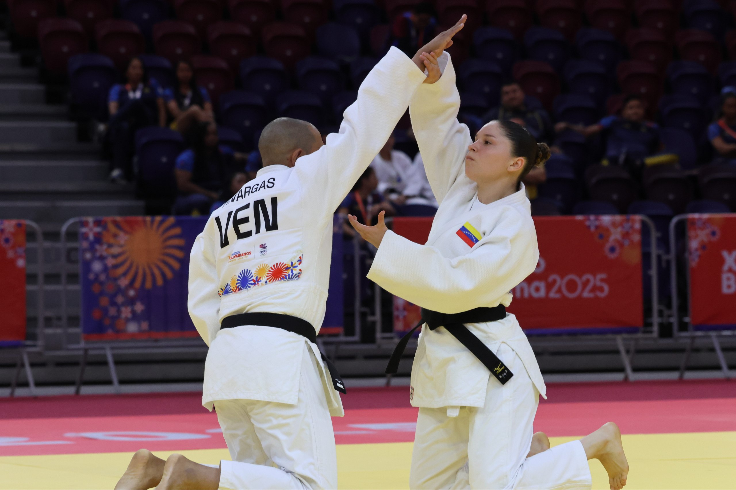 La acción del judo bolivariano cerró con el kata en duplas mixtas. En el katame no kata (formas de control), Jender Guevara y Jesús Farías se quedaron con la medalla de bronce, al igual que Jellyfel Guevara y Henry Vargas en el kime-no-kata (formas de decisión).
