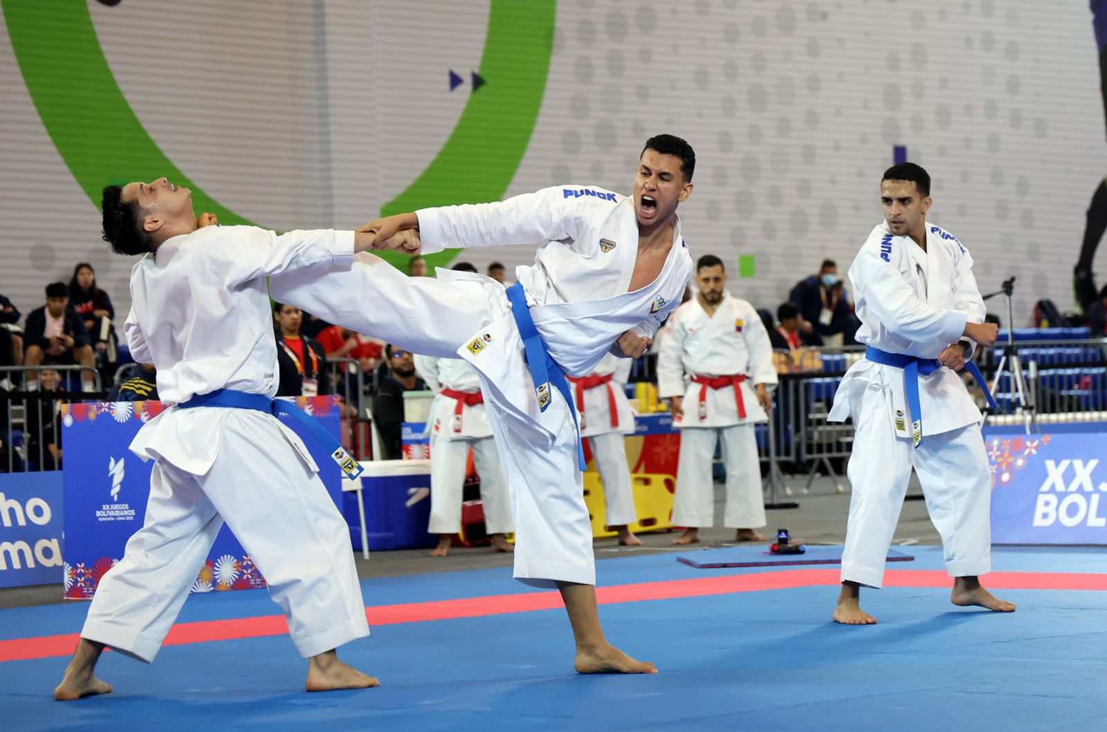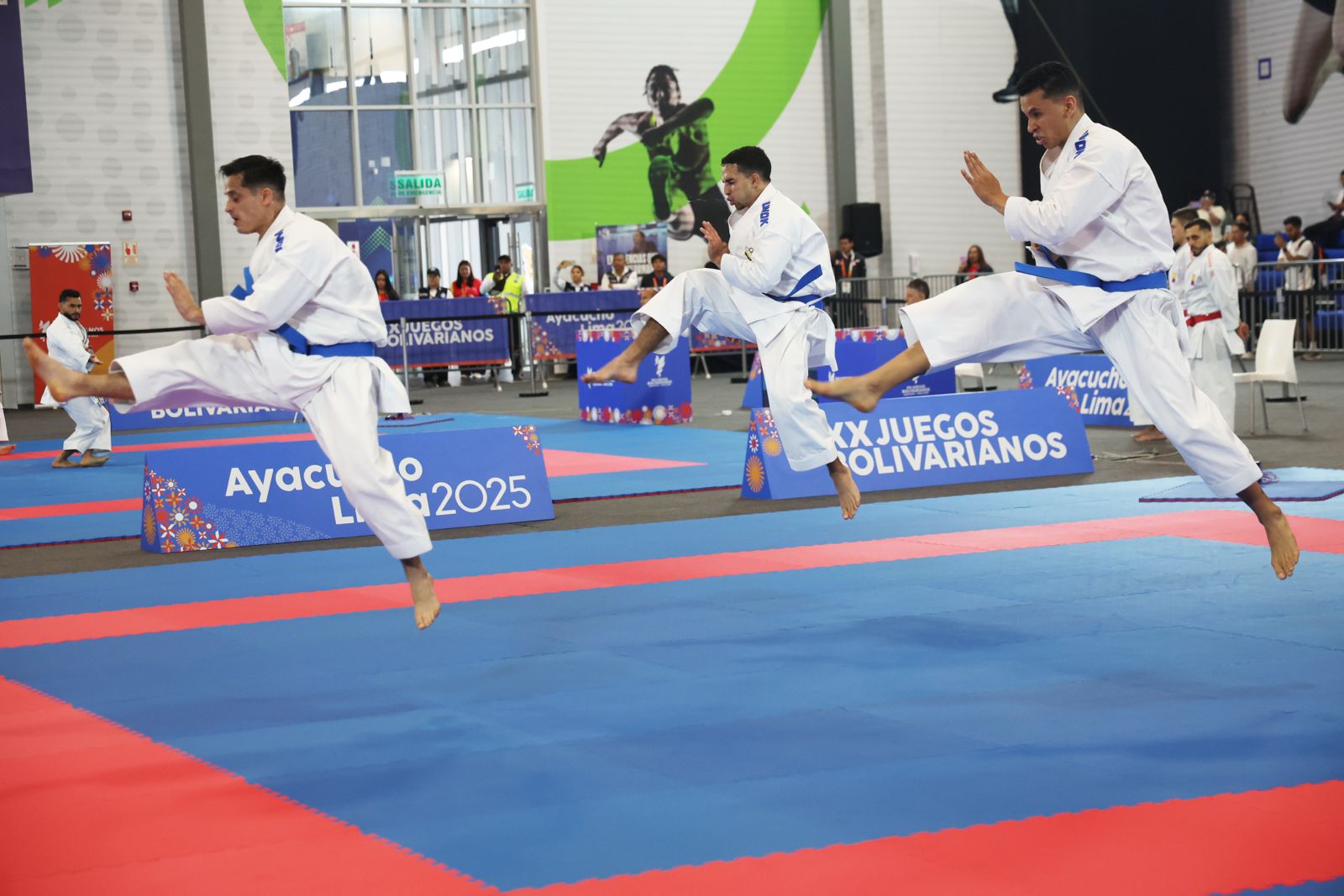 La primera presea criolla de la competición llevada a cabo en el Polideportivo USIL – Campus Pachacamac de Lima, llegó por intermedio del equipo de kata masculino integrado por los atletas Miguel Galindo, Luis Rojas y Jorge Durán, quienes sumaron 39.7 puntos para dominar a República Dominicana en la semifinal, pero cedieron ante Colombia en la final con 38.1 unidades.