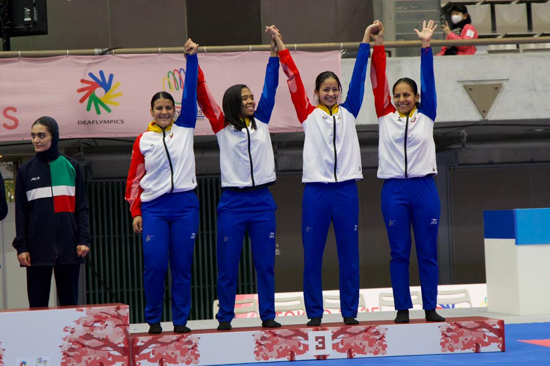 Bilmary Justo, Liz Marcano, Alejandra Philips y Ana Rivero, conquistaron la medalla de bronce en kumite por equipo al vencer 2-0 (6-1 y 3-0) a las representantes de Turquía para cerrar en el podio su participación en los Juegos Sordolímpicos de Tokio 2025.