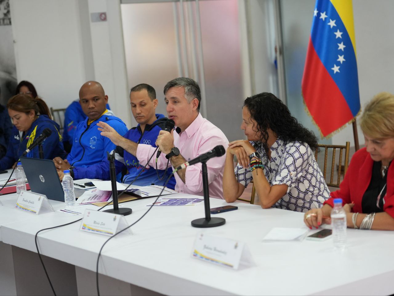 La reunión, realizada este martes en la sede del IND, en Caracas, estuvo liderada por el ministro Franklin Cardillo, el viceministro de Deporte de Alto Rendimiento, Henyelberth Herrera, la viceministra de Formación e Innovación de la Actividad Física y el Deporte, Karla Luna, la presidenta del COV, María Soto y el presidente del COPAVEN, Juan José Rujano.