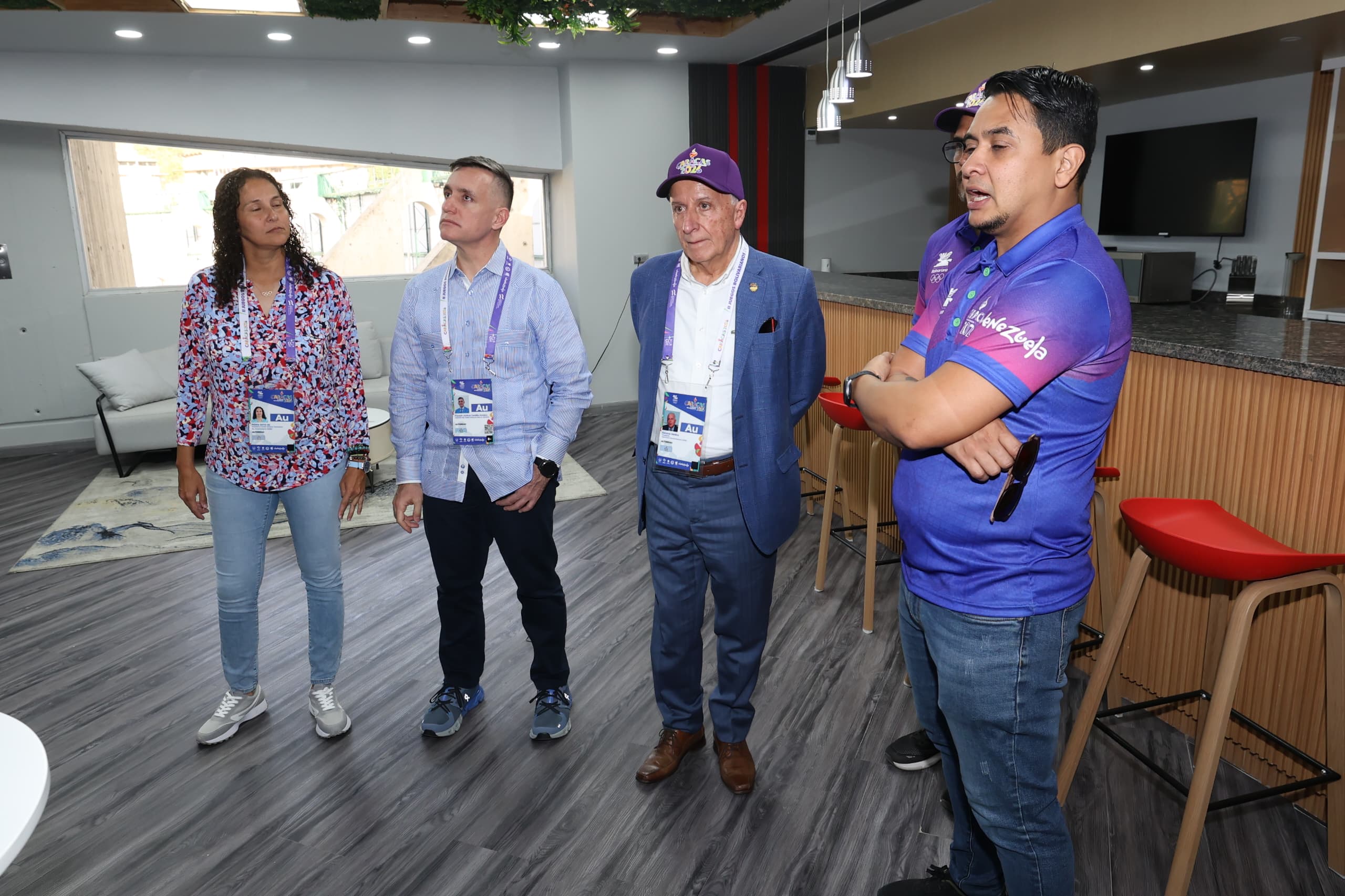 La comitiva bolivariana la completaron Renzo Manyari, tesorero y Giorgio Alberto, director técnico, quienes fueron acompañados durante el recorrido por las autoridades deportivas venezolanas Franklin Cardillo, ministro del Poder Popular para el Deporte; María Soto, presidenta del Comité Olímpico Venezolano; el profesor Jesús Brito, director general de la cita multideportiva juvenil y Harold Ramos, presidente del Instituto Municipal de Deporte y Recreación de Caracas, entre otros.