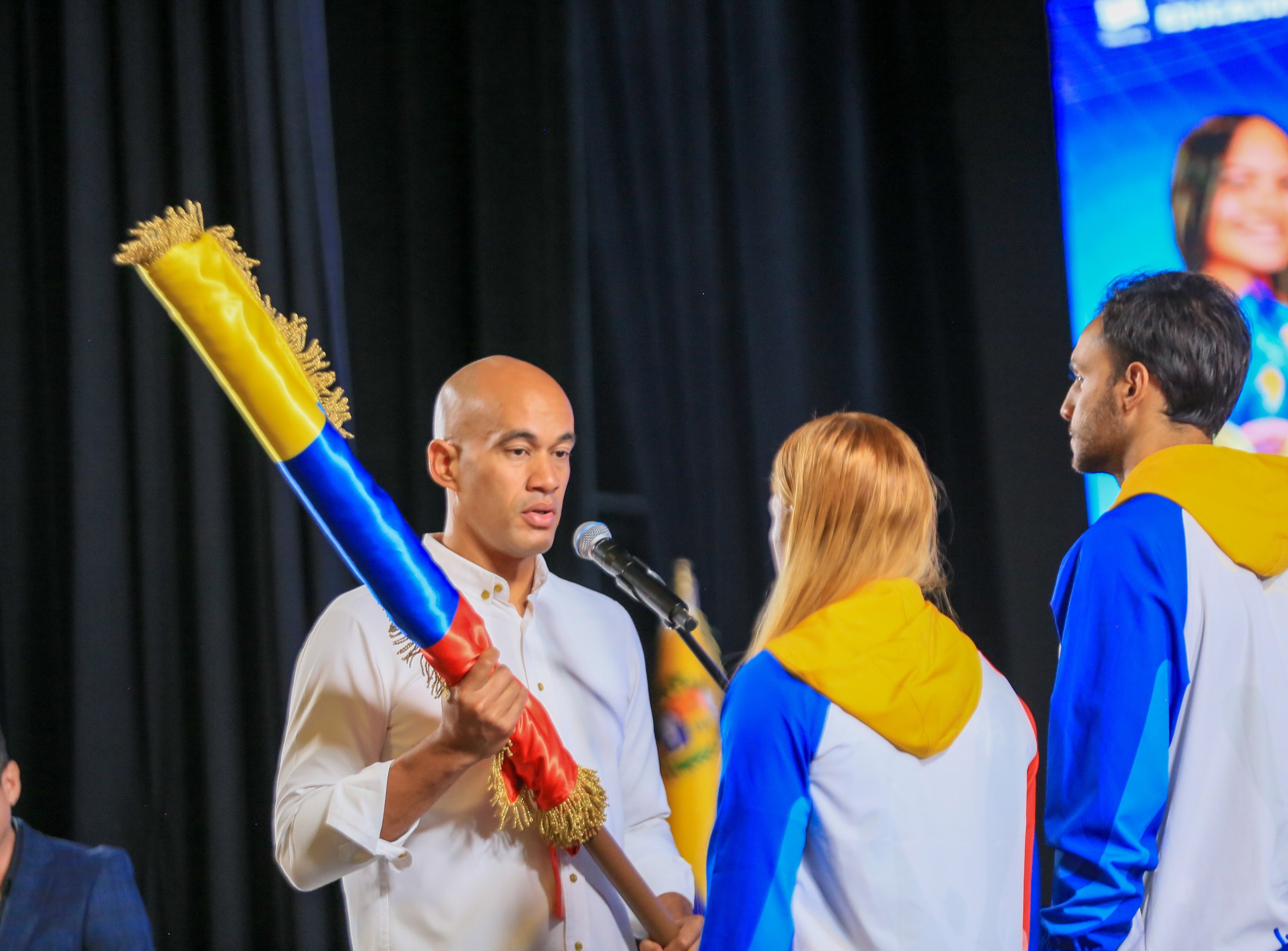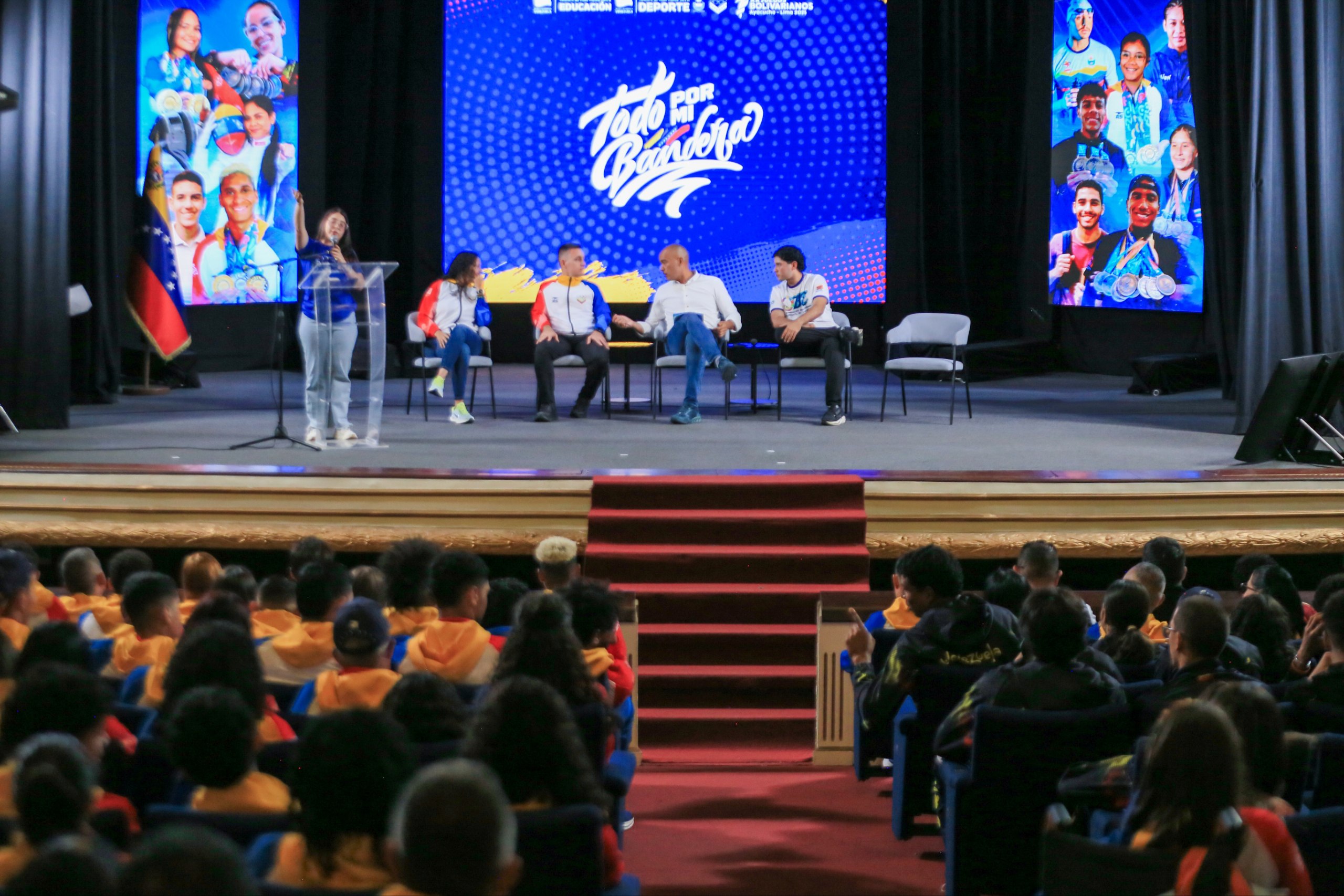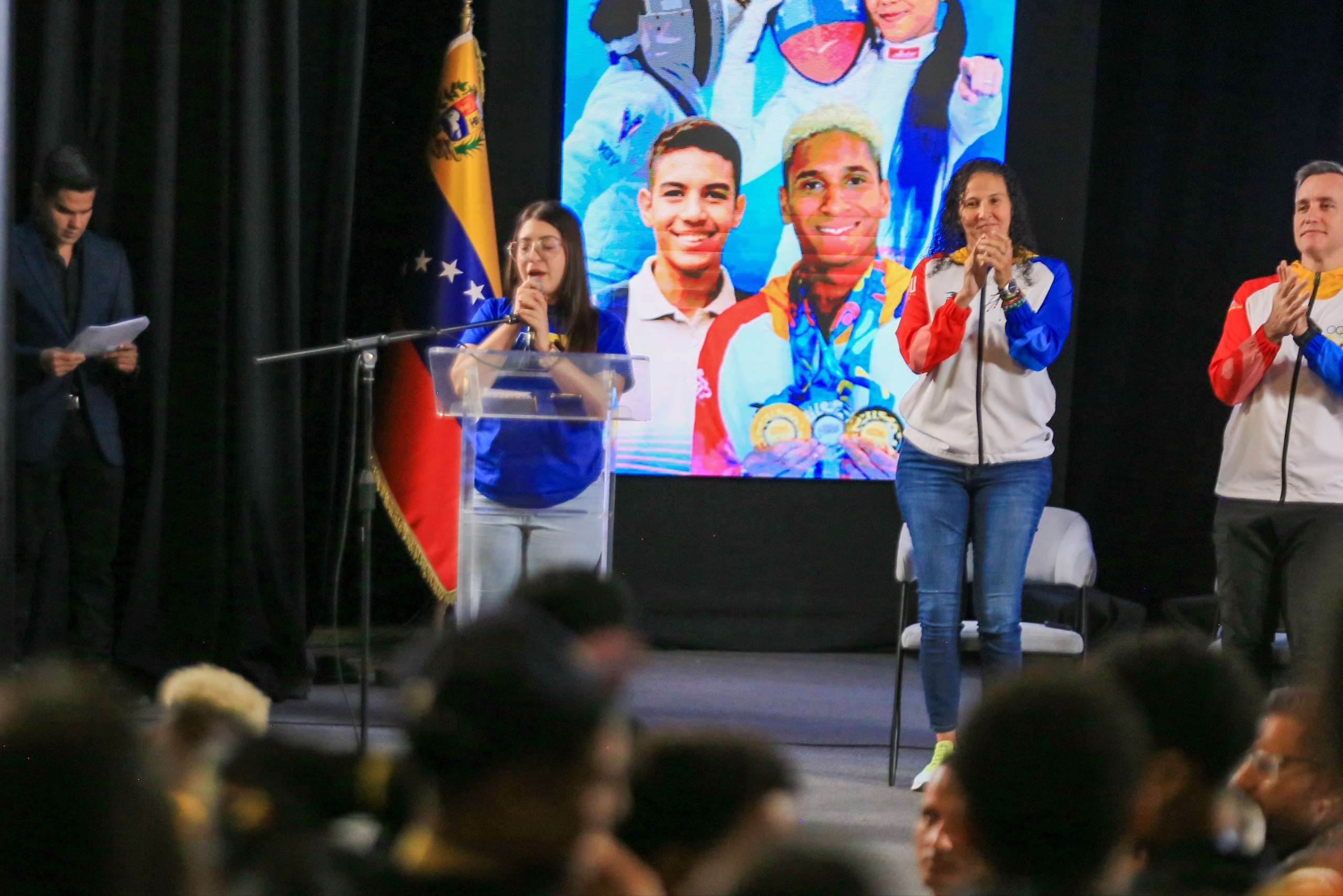 La ceremonia contó con la presencia del ministro del Poder Popular para el Deporte, Franklin Cardillo; la presidenta del Comité Olímpico Venezolano (COV), María Soto; y el vicepresidente Sectorial para el Socialismo Social y Territorial y ministro de Educación, Héctor Rodríguez; junto a los atletas y grupos de estudiantes presentes.