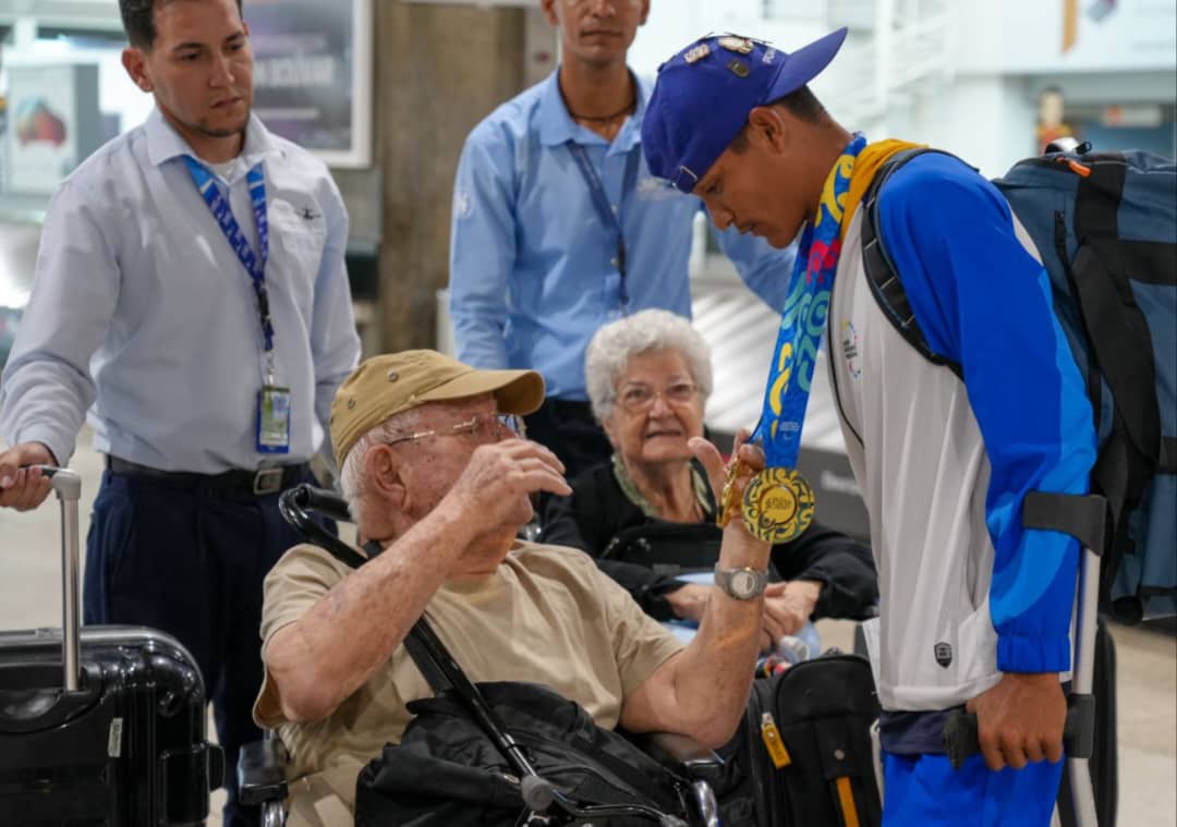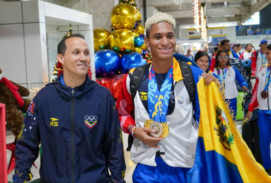 El viceministro de Alto Rendimiento, Henyelberth Herrera, dio una cálida bienvenida a los campeones en el Aeropuerto Internacional Simón Bolívar de Maiquetía, y ensalzó la destacada participación en la justa.