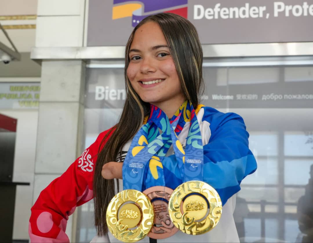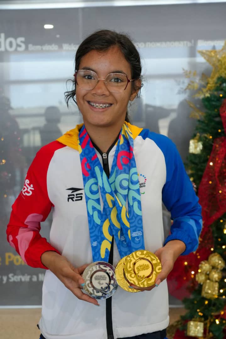 “Aquí estamos recibiendo a nuestros héroes y heroínas del movimiento paralímpico juvenil que están retornando llenos de triunfos y una valiosa cosecha de 10 medallas de oro, 8 de plata y 6 de bronce”, indicó Herrera.
