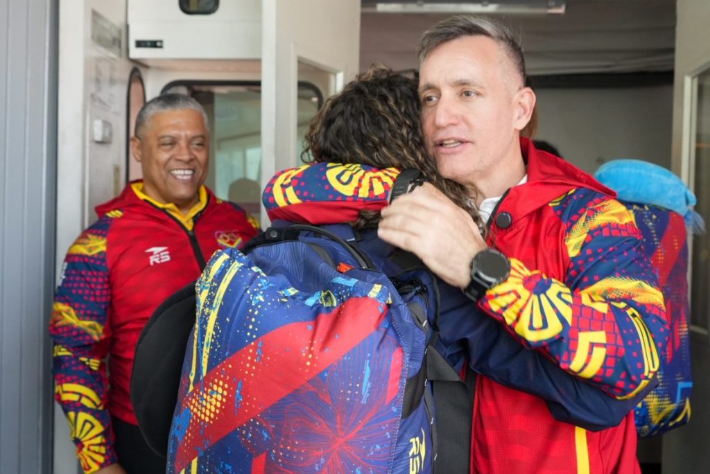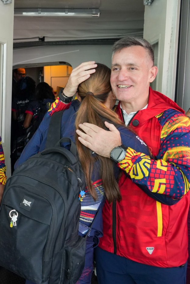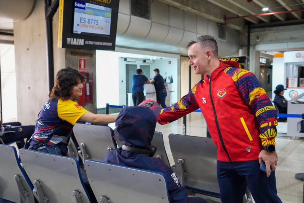 El ministro de Deporte Franklin Cardillo acompañó a la delegación hasta el abordaje donde se despidió enviando un mensaje alentador al equipo de ir por la conquista de los podios en todas las competencias.
