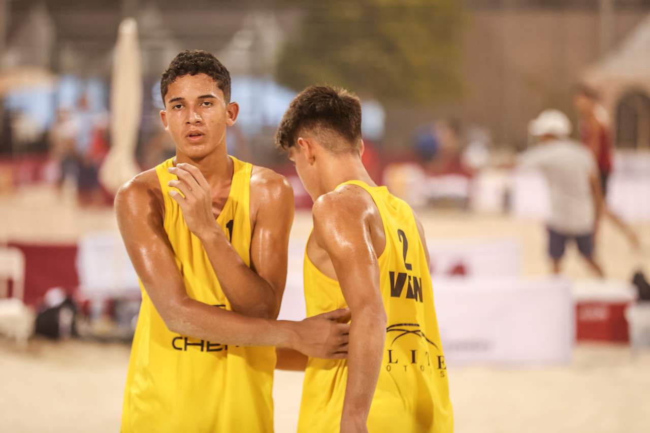 Las duplas de Valeria Moreno y Aidana Mejías y Gerardo Bordones y Sebastián Pereira accedieron a la siguiente ronda de los 24 mejores del Campeonato Mundial de Voleibol de Playa sub-18 que se disputa desde el miércoles hasta el domingo 11 de octubre en Doha, Catar.