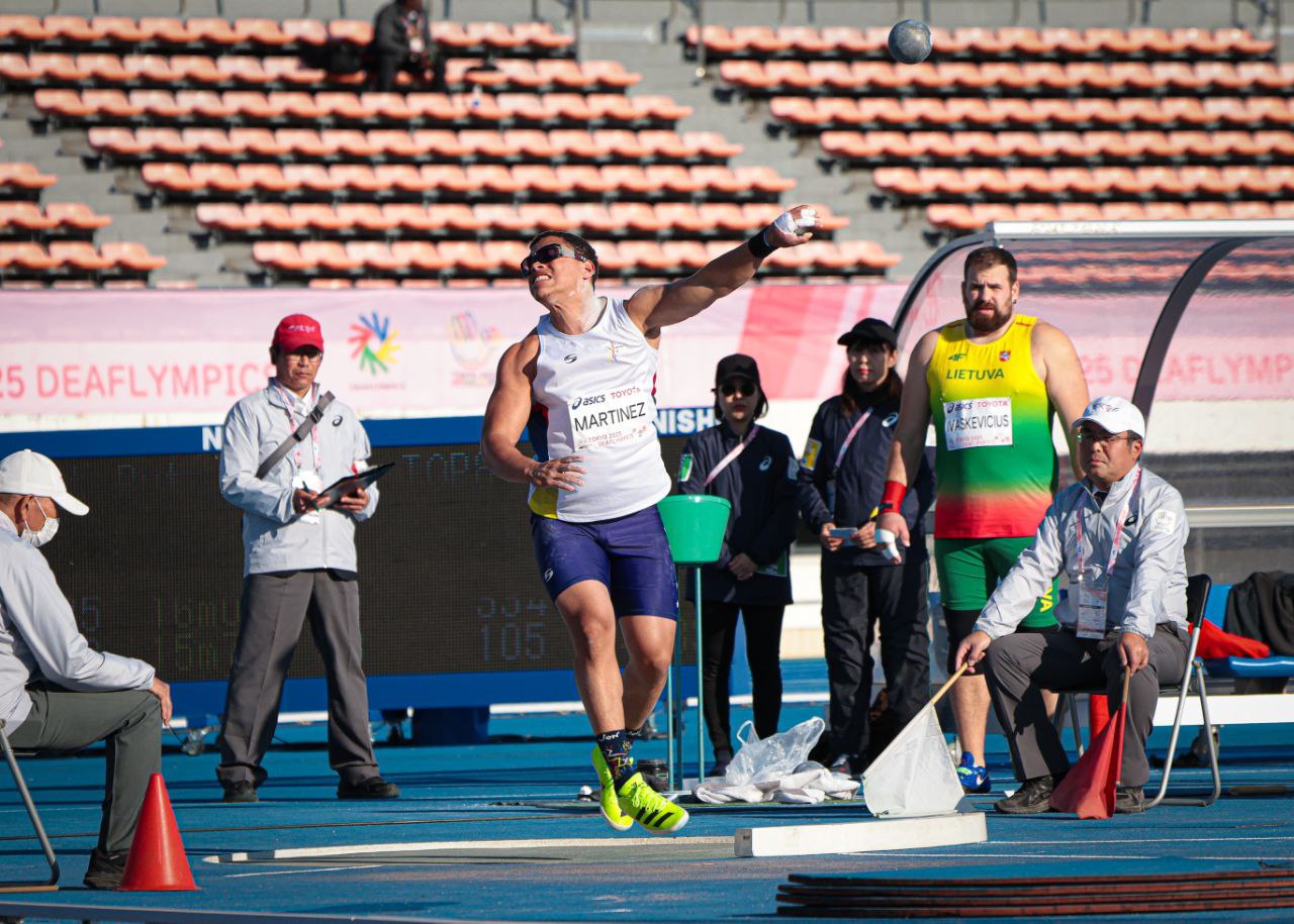 El campeón panamericano de baloncesto que debutó ahora en la final del atletismo de deficiencia auditiva, Yosswuel Martínez, dio su mejor esfuerzo en el impulso de bala de los Juegos Sordolímpicos de Tokio 2025 con una marca de 11.64 metros y la posición 11 de la tabla general.